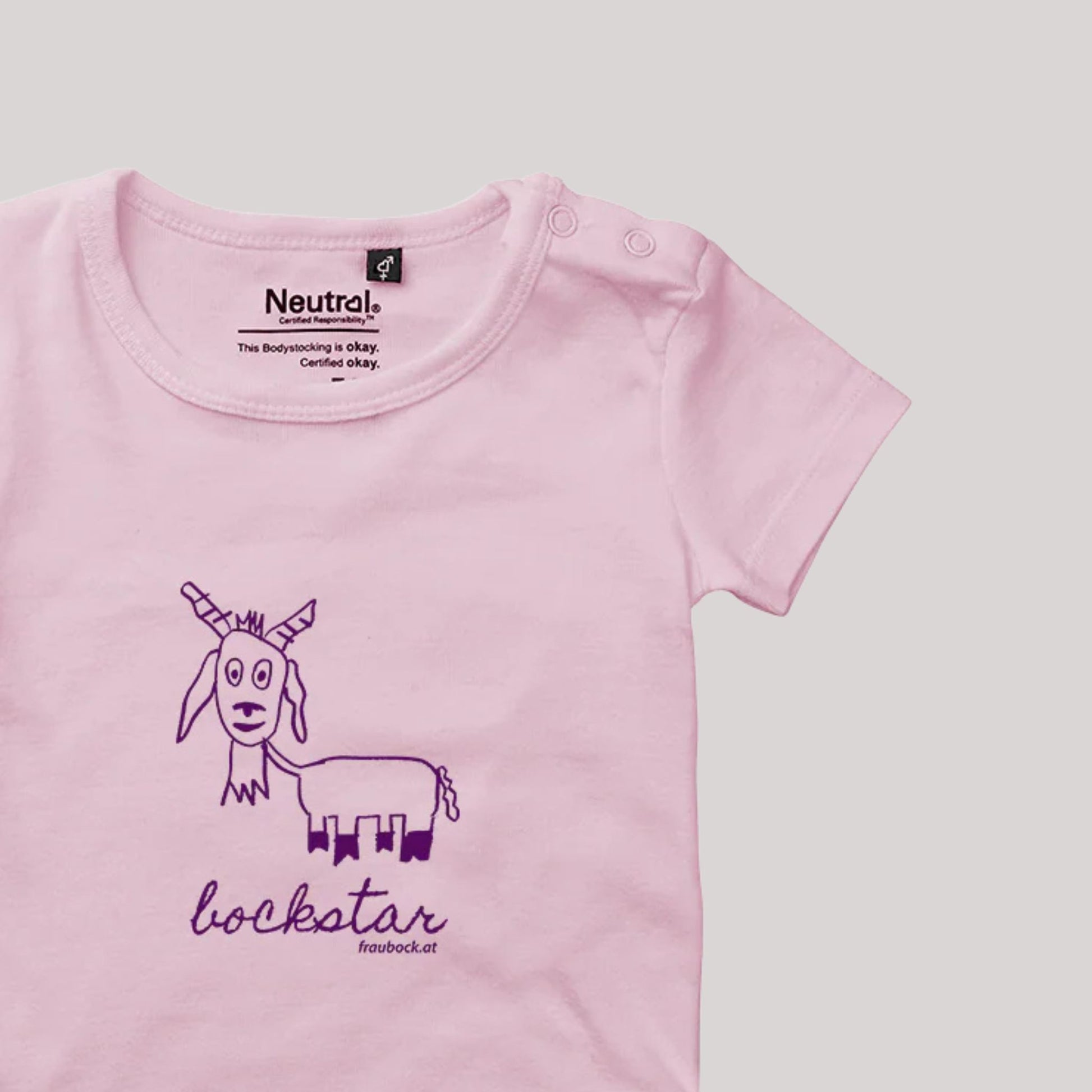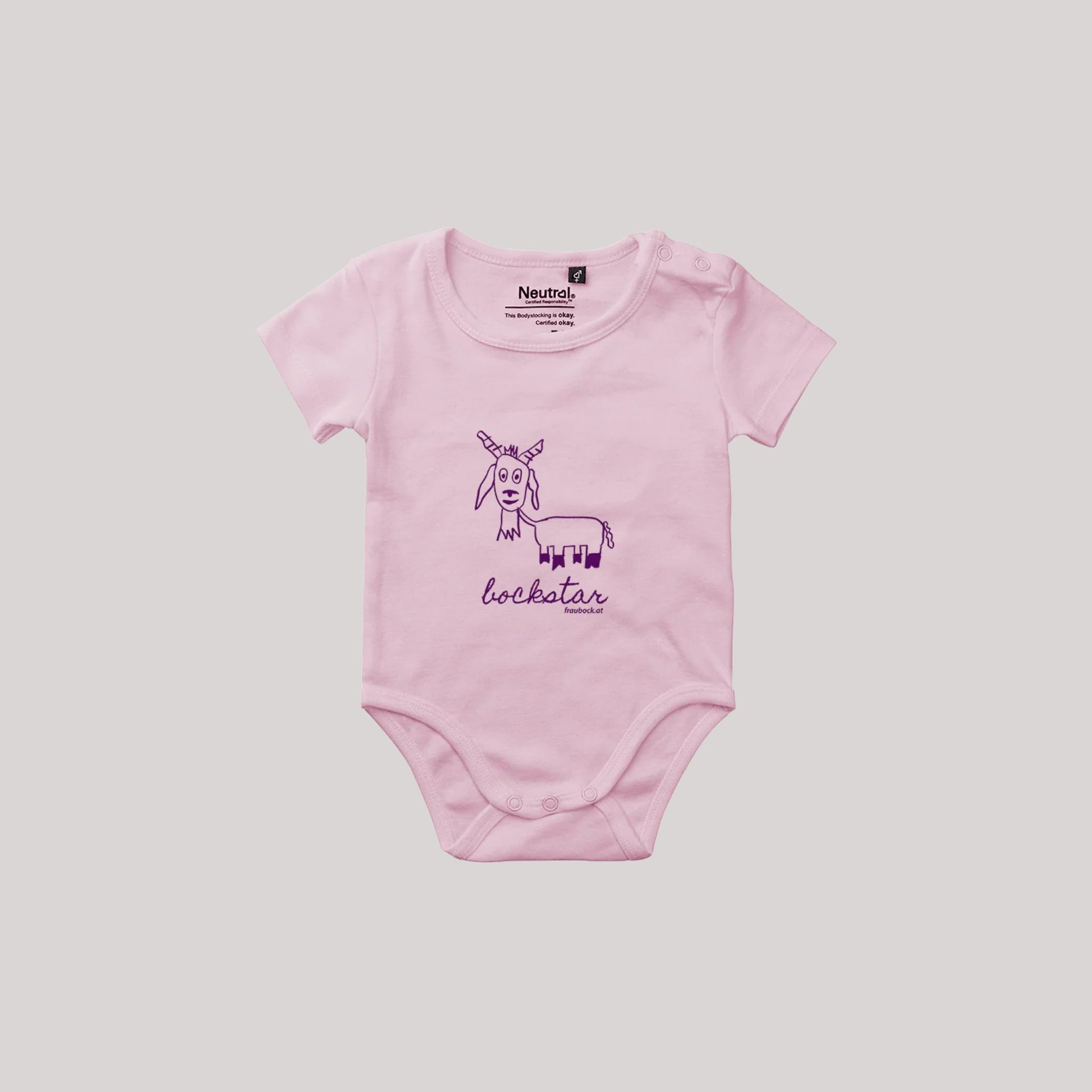 Den Baby Body "bockstar" gibt es in Soft-Blue und Powder-Pink.