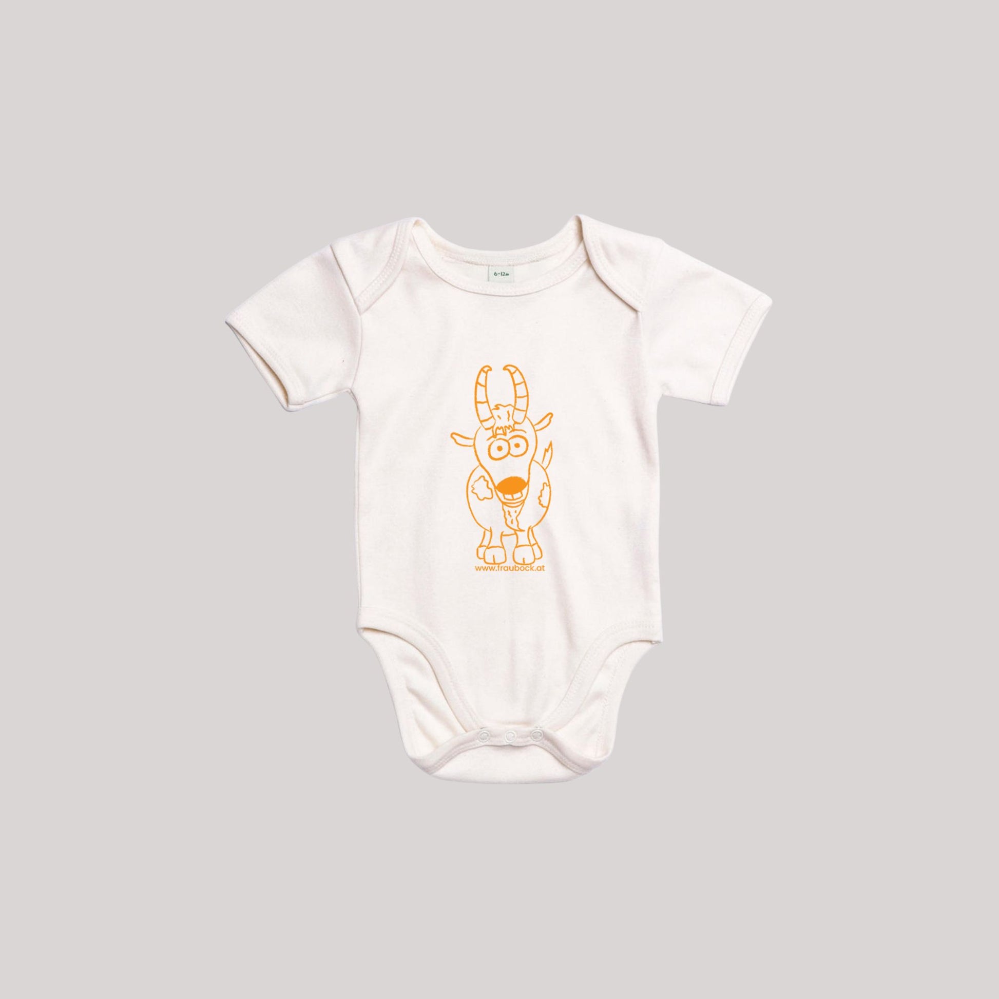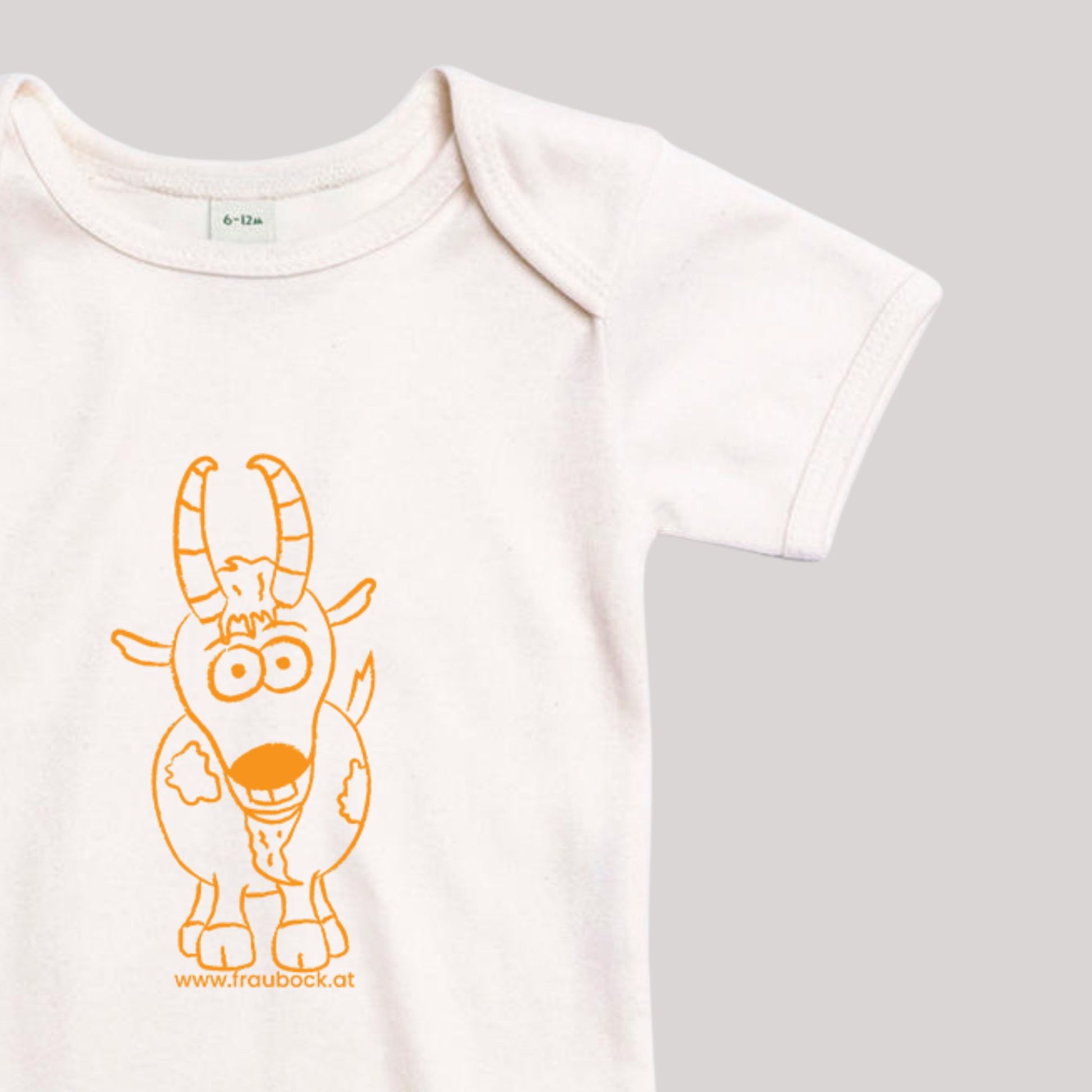 Auf dem süßen Babybody "Frecher Bock" macht uns unser ikonischer Bock schöne Augen. Sein fröhliches Orange steht im lebendigen Kontrast zum sanften Naturton des Bodys.