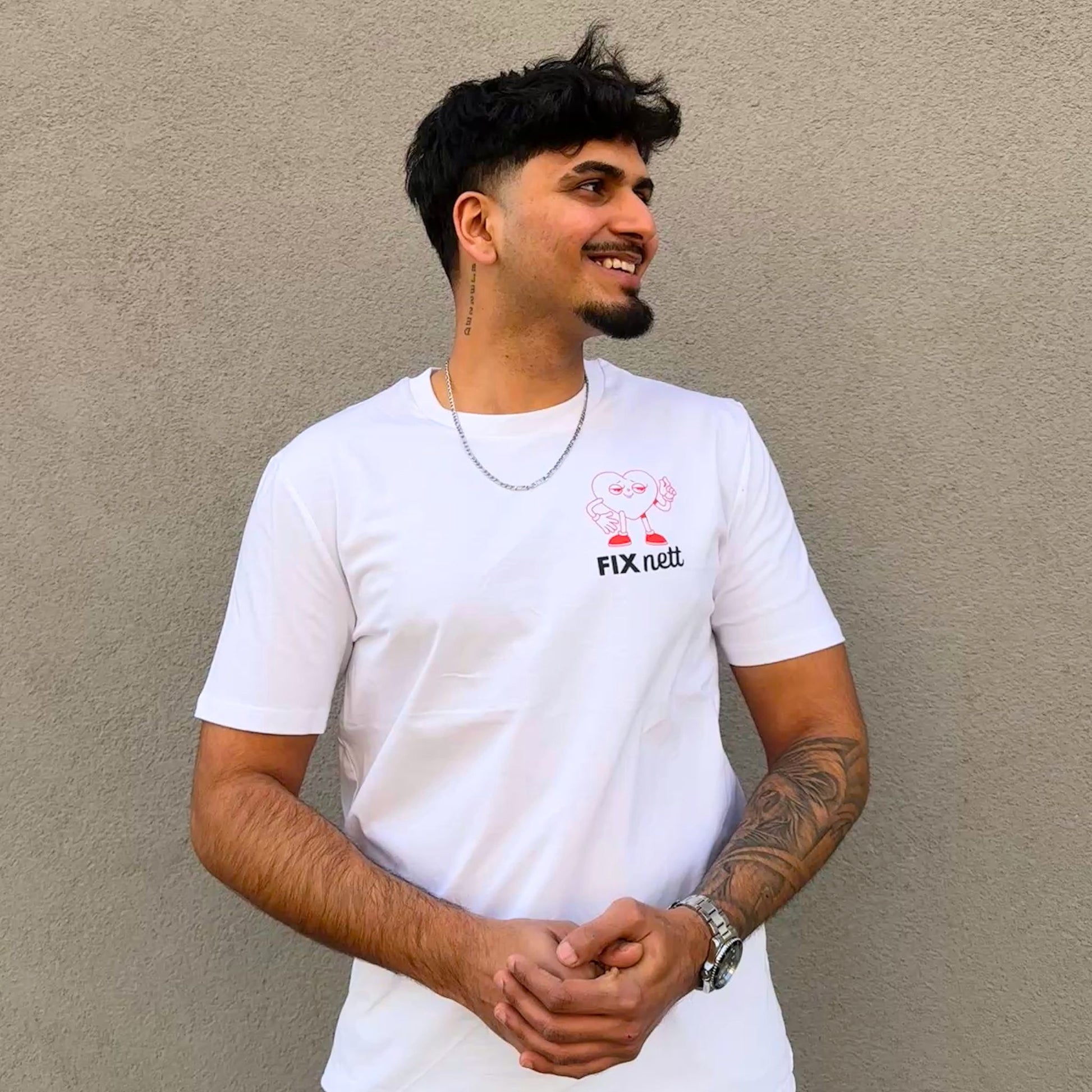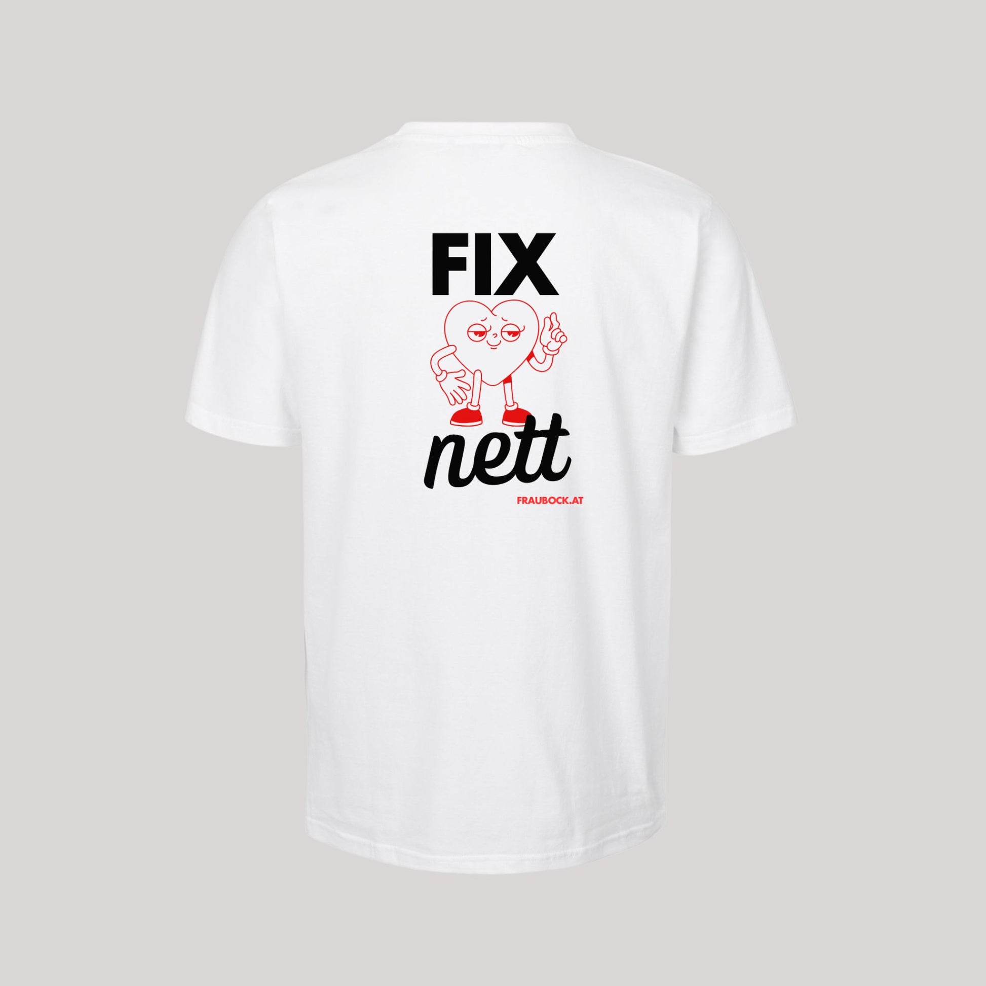 Radikal nett - aus Wiener Grant wird bockiger Charme für ein gutes Miteinander! Das Shirt mit rotem Retro-Herz auf Vorder- und Rückseite wird zum Statement für Widerstand. Wir sagen: Menschlichkeit muss bleiben! Sei FIX NETT mit uns!